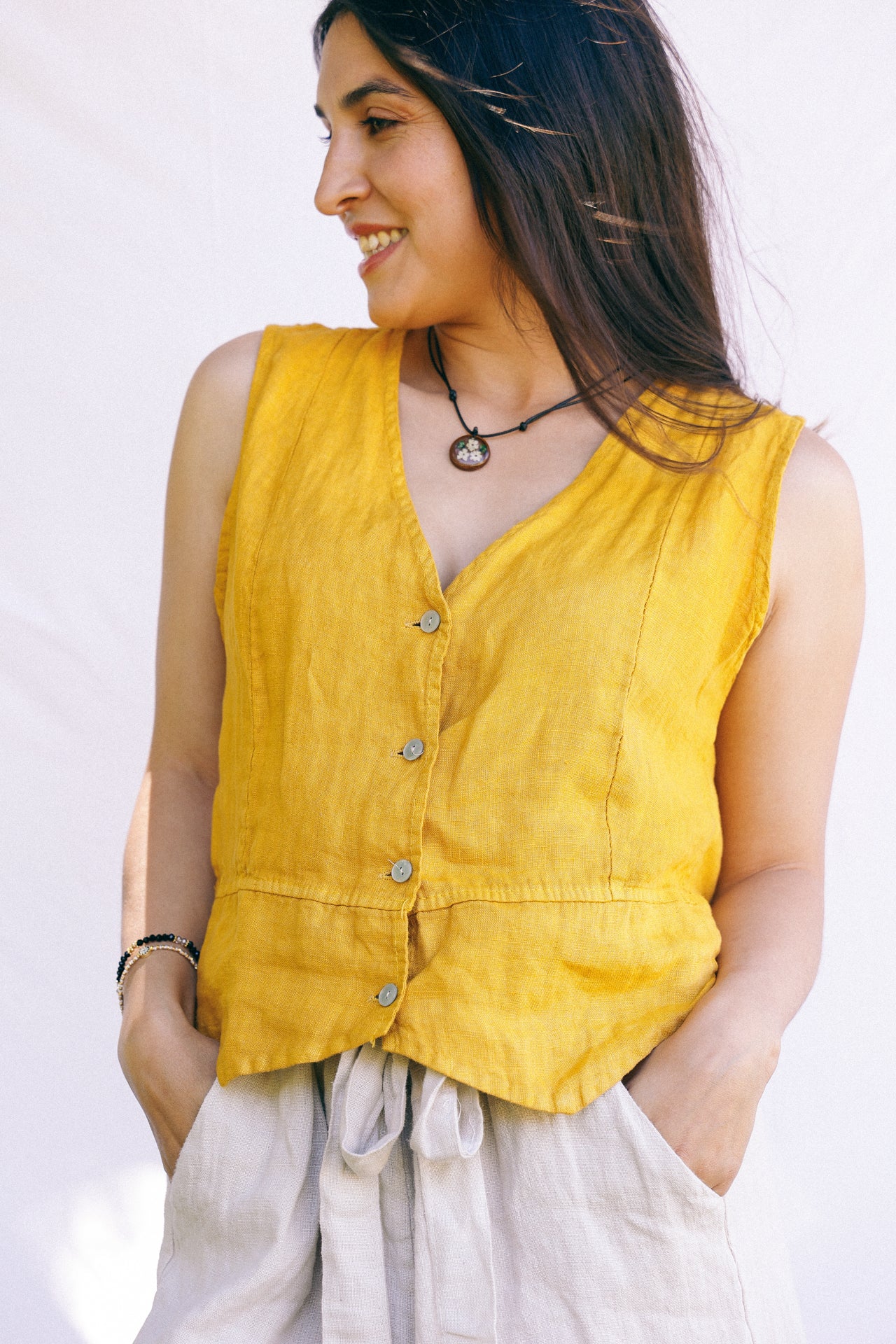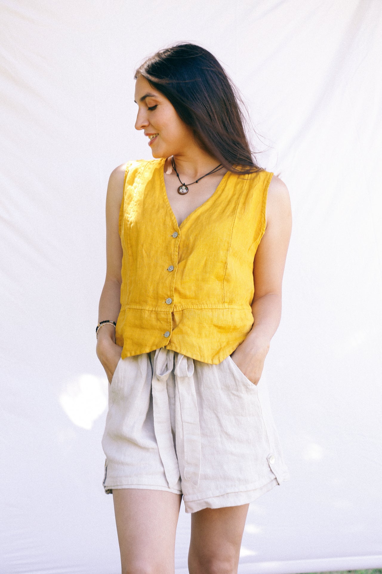 Blusa de lino italiano, con botones al centro. Ligera y liviana.